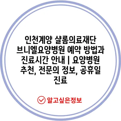 인천계양 샬롬의료재단 브니엘요양병원 예약 방법과 진료시간 안내 | 요양병원 추천, 전문의 정보, 공휴일 진료