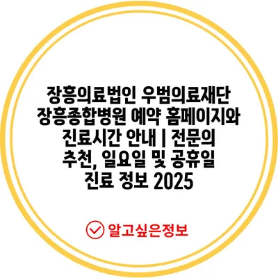 장흥의료법인 우범의료재단 장흥종합병원 예약 홈페이지와 진료시간 안내 | 전문의 추천, 일요일 및 공휴일 진료 정보 2025