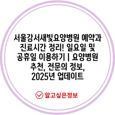서울강서새빛요양병원 예약과 진료시간 정리! 일요일 및 공휴일 이용하기 | 요양병원 추천, 전문의 정보, 2025년 업데이트