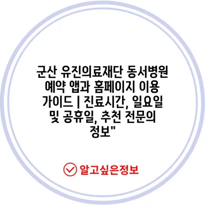 군산 유진의료재단 동서병원 예약 앱과 홈페이지 이용 가이드 | 진료시간, 일요일 및 공휴일, 추천 전문의 정보”
