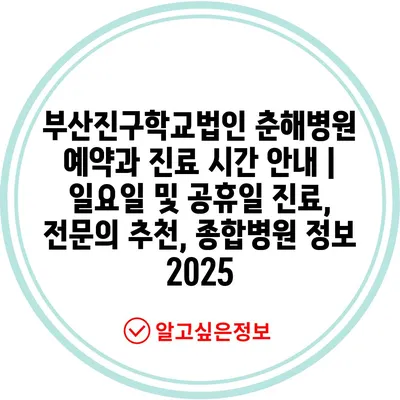 부산진구학교법인 춘해병원 예약과 진료 시간 안내 | 일요일 및 공휴일 진료, 전문의 추천, 종합병원 정보 2025