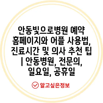 안동빛으로병원 예약 홈페이지와 어플 사용법, 진료시간 및 의사 추천 팁 | 안동병원, 전문의, 일요일, 공휴일