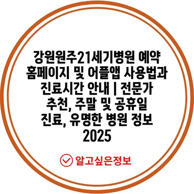 강원원주21세기병원 예약 홈페이지 및 어플앱 사용법과 진료시간 안내 | 전문가 추천, 주말 및 공휴일 진료, 유명한 병원 정보 2025