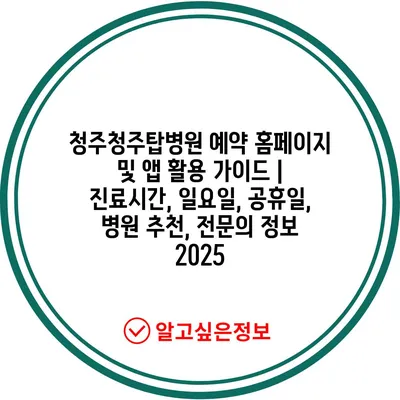 청주청주탑병원 예약 홈페이지 및 앱 활용 가이드 | 진료시간, 일요일, 공휴일, 병원 추천, 전문의 정보 2025