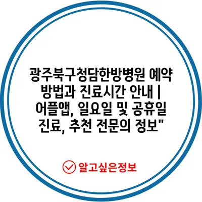 광주북구청담한방병원 예약 방법과 진료시간 안내 | 어플앱, 일요일 및 공휴일 진료, 추천 전문의 정보”