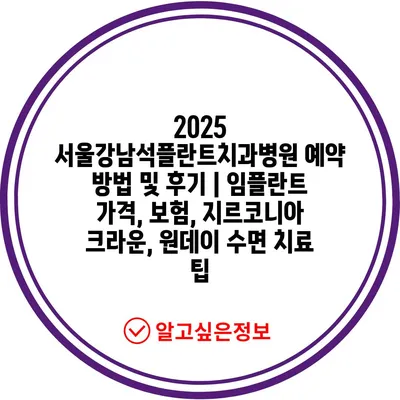 2025 서울강남석플란트치과병원 예약 방법 및 후기 | 임플란트 가격, 보험, 지르코니아 크라운, 원데이 수면 치료 팁