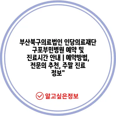 부산북구의료법인 인당의료재단 구포부민병원 예약 및 진료시간 안내 | 예약방법, 전문의 추천, 주말 진료 정보”