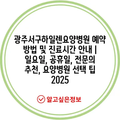 광주서구하일렌요양병원 예약 방법 및 진료시간 안내 | 일요일, 공휴일, 전문의 추천, 요양병원 선택 팁 2025