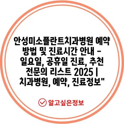 안성미소플란트치과병원 예약 방법 및 진료시간 안내 – 일요일, 공휴일 진료, 추천 전문의 리스트 2025 | 치과병원, 예약, 진료정보”