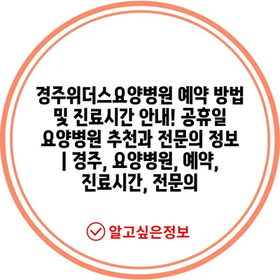 경주위더스요양병원 예약 방법 및 진료시간 안내! 공휴일 요양병원 추천과 전문의 정보 | 경주, 요양병원, 예약, 진료시간, 전문의