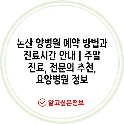 논산 양병원 예약 방법과 진료시간 안내 | 주말 진료, 전문의 추천, 요양병원 정보