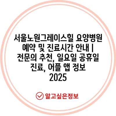 서울노원그레이스힐 요양병원 예약 및 진료시간 안내 | 전문의 추천, 일요일 공휴일 진료, 어플 앱 정보 2025
