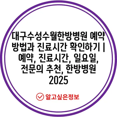 대구수성수월한방병원 예약 방법과 진료시간 확인하기 | 예약, 진료시간, 일요일, 전문의 추천, 한방병원 2025
