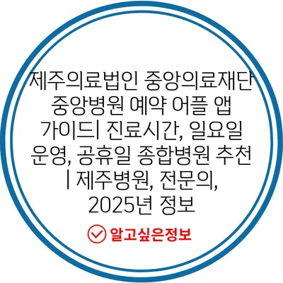 제주의료법인 중앙의료재단 중앙병원 예약 어플 앱 가이드| 진료시간, 일요일 운영, 공휴일 종합병원 추천 | 제주병원, 전문의, 2025년 정보