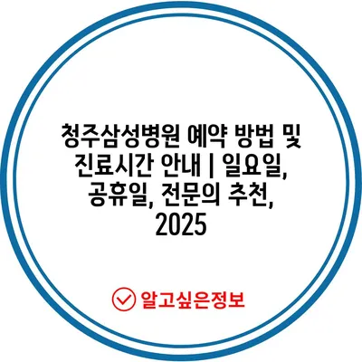 청주삼성병원 예약 방법 및 진료시간 안내 | 일요일, 공휴일, 전문의 추천, 2025