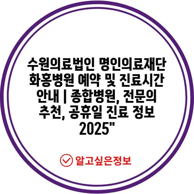 수원의료법인 명인의료재단 화홍병원 예약 및 진료시간 안내 | 종합병원, 전문의 추천, 공휴일 진료 정보 2025″