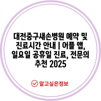 대전중구새손병원 예약 및 진료시간 안내 | 어플 앱, 일요일 공휴일 진료, 전문의 추천 2025