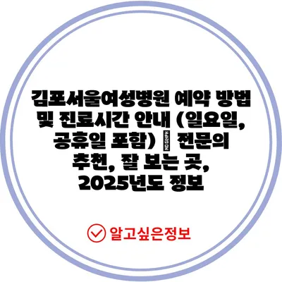 김포서울여성병원 예약 방법 및 진료시간 안내 (일요일, 공휴일 포함) | 전문의 추천, 잘 보는 곳, 2025년도 정보