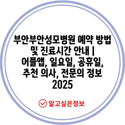 부안부안성모병원 예약 방법 및 진료시간 안내 | 어플앱, 일요일, 공휴일, 추천 의사, 전문의 정보 2025