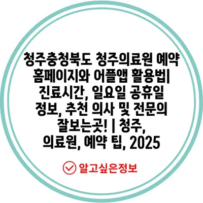 청주충청북도 청주의료원 예약 홈페이지와 어플앱 활용법| 진료시간, 일요일 공휴일 정보, 추천 의사 및 전문의 잘보는곳! | 청주, 의료원, 예약 팁, 2025