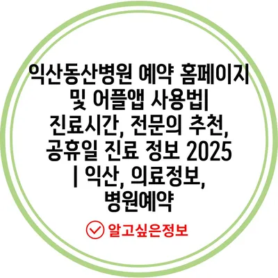 익산동산병원 예약 홈페이지 및 어플앱 사용법| 진료시간, 전문의 추천, 공휴일 진료 정보 2025 | 익산, 의료정보, 병원예약