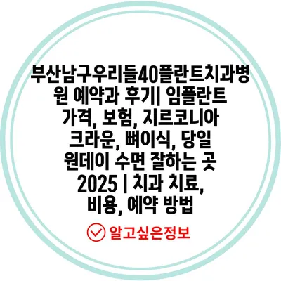 부산남구우리들40플란트치과병원 예약과 후기| 임플란트 가격, 보험, 지르코니아 크라운, 뼈이식, 당일 원데이 수면 잘하는 곳 2025 | 치과 치료, 비용, 예약 방법