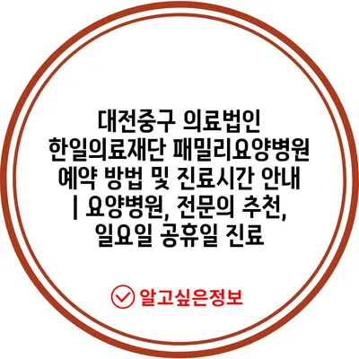 대전중구 의료법인 한일의료재단 패밀리요양병원 예약 방법 및 진료시간 안내 | 요양병원, 전문의 추천, 일요일 공휴일 진료