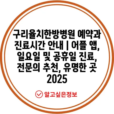 구리율치한방병원 예약과 진료시간 안내 | 어플 앱, 일요일 및 공휴일 진료, 전문의 추천, 유명한 곳 2025