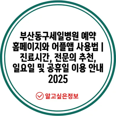 부산동구세일병원 예약 홈페이지와 어플앱 사용법 | 진료시간, 전문의 추천, 일요일 및 공휴일 이용 안내 2025