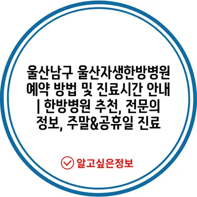 울산남구 울산자생한방병원 예약 방법 및 진료시간 안내 | 한방병원 추천, 전문의 정보, 주말&공휴일 진료