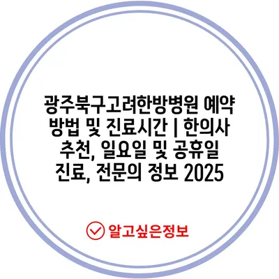광주북구고려한방병원 예약 방법 및 진료시간 | 한의사 추천, 일요일 및 공휴일 진료, 전문의 정보 2025