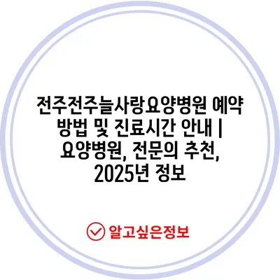 전주전주늘사랑요양병원 예약 방법 및 진료시간 안내 | 요양병원, 전문의 추천, 2025년 정보