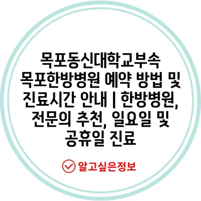 목포동신대학교부속 목포한방병원 예약 방법 및 진료시간 안내 | 한방병원, 전문의 추천, 일요일 및 공휴일 진료