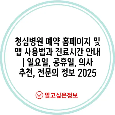청심병원 예약 홈페이지 및 앱 사용법과 진료시간 안내 | 일요일, 공휴일, 의사 추천, 전문의 정보 2025