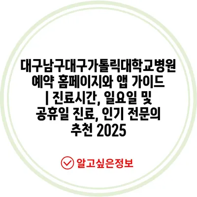 대구남구대구가톨릭대학교병원 예약 홈페이지와 앱 가이드 | 진료시간, 일요일 및 공휴일 진료, 인기 전문의 추천 2025