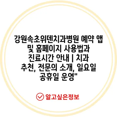 강원속초위덴치과병원 예약 앱 및 홈페이지 사용법과 진료시간 안내 | 치과 추천, 전문의 소개, 일요일 공휴일 운영”