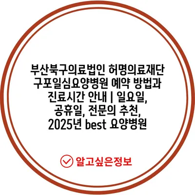 부산북구의료법인 허명의료재단 구포일심요양병원 예약 방법과 진료시간 안내 | 일요일, 공휴일, 전문의 추천, 2025년 best 요양병원