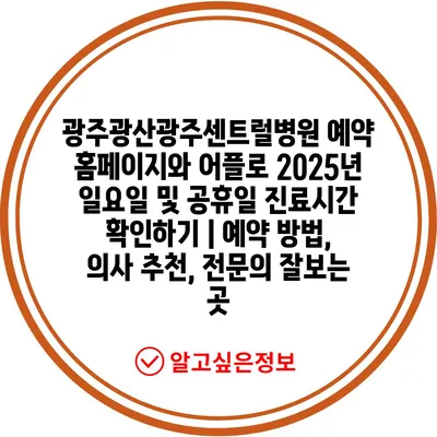 광주광산광주센트럴병원 예약 홈페이지와 어플로 2025년 일요일 및 공휴일 진료시간 확인하기 | 예약 방법, 의사 추천, 전문의 잘보는 곳