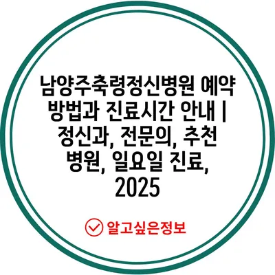 남양주축령정신병원 예약 방법과 진료시간 안내 | 정신과, 전문의, 추천 병원, 일요일 진료, 2025