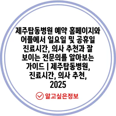 제주탑동병원 예약 홈페이지와 어플에서 일요일 및 공휴일 진료시간, 의사 추천과 잘 보이는 전문의를 알아보는 가이드 | 제주탑동병원, 진료시간, 의사 추천, 2025