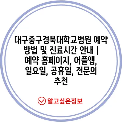 대구중구경북대학교병원 예약 방법 및 진료시간 안내 | 예약 홈페이지, 어플앱, 일요일, 공휴일, 전문의 추천