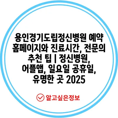 용인경기도립정신병원 예약 홈페이지와 진료시간, 전문의 추천 팁 | 정신병원, 어플앱, 일요일 공휴일, 유명한 곳 2025