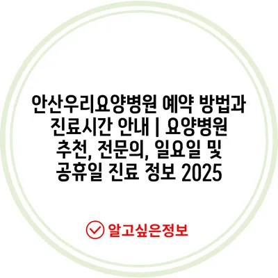 안산우리요양병원 예약 방법과 진료시간 안내 | 요양병원 추천, 전문의, 일요일 및 공휴일 진료 정보 2025