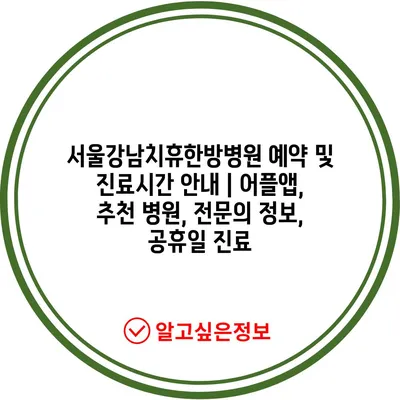 서울강남치휴한방병원 예약 및 진료시간 안내 | 어플앱, 추천 병원, 전문의 정보, 공휴일 진료
