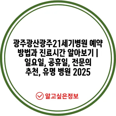 광주광산광주21세기병원 예약 방법과 진료시간 알아보기 | 일요일, 공휴일, 전문의 추천, 유명 병원 2025