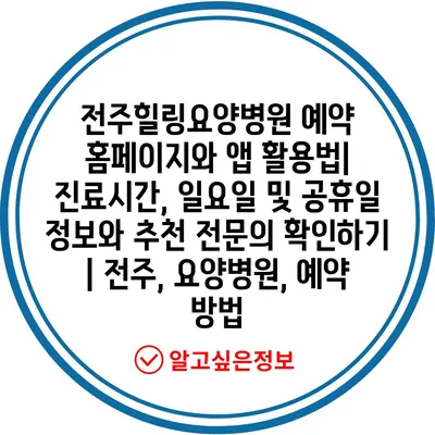 전주힐링요양병원 예약 홈페이지와 앱 활용법| 진료시간, 일요일 및 공휴일 정보와 추천 전문의 확인하기 | 전주, 요양병원, 예약 방법