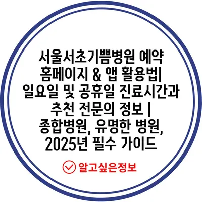 서울서초기쁨병원 예약 홈페이지 & 앱 활용법| 일요일 및 공휴일 진료시간과 추천 전문의 정보 | 종합병원, 유명한 병원, 2025년 필수 가이드
