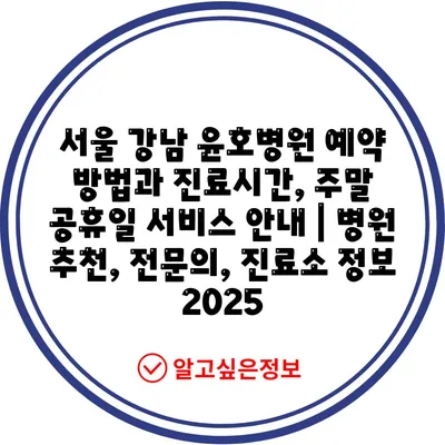 서울 강남 윤호병원 예약 방법과 진료시간, 주말 공휴일 서비스 안내 | 병원 추천, 전문의, 진료소 정보 2025