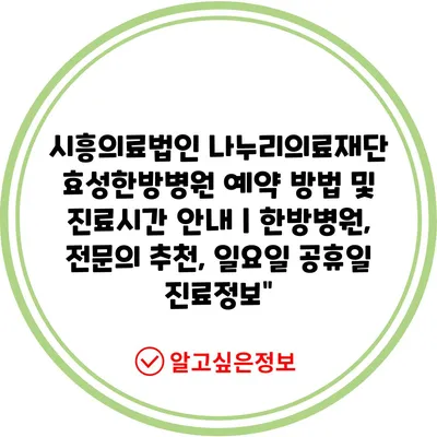 시흥의료법인 나누리의료재단 효성한방병원 예약 방법 및 진료시간 안내 | 한방병원, 전문의 추천, 일요일 공휴일 진료정보”
