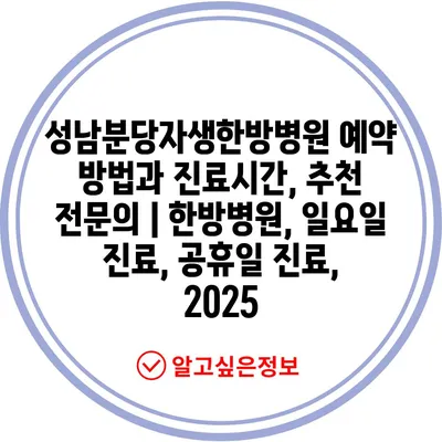 성남분당자생한방병원 예약 방법과 진료시간, 추천 전문의 | 한방병원, 일요일 진료, 공휴일 진료, 2025